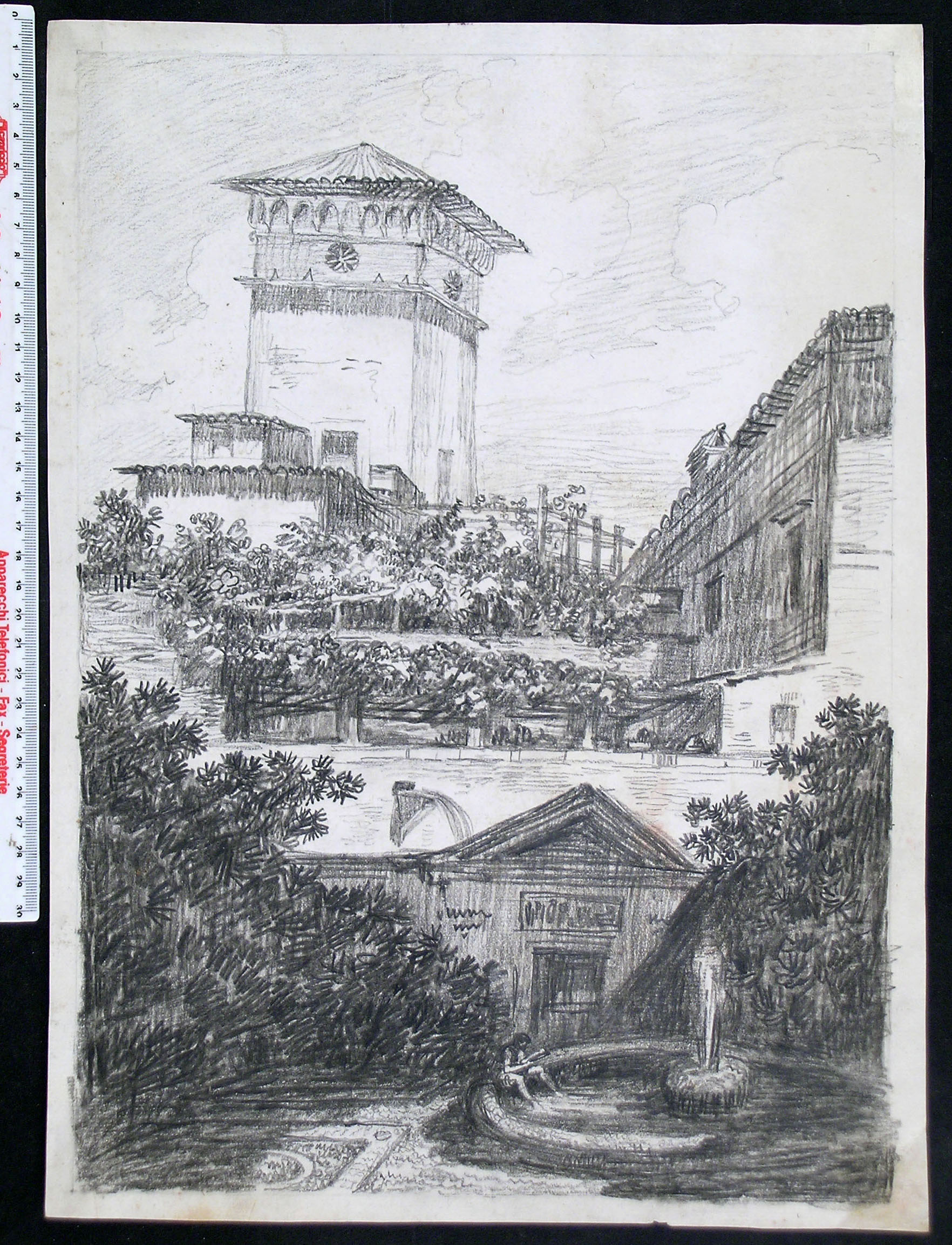 Giorgio Marini kindly pointed to me that the Villa portrayed in this drawing is Villa Malta, in Rome. From the second half of the eighteenth century Villa Malta became a point of support of the German community in Rome. In the early nineteenth century the villa was inhabited by the poetess Frederike Brun, and William von Humboldt, the ambassador to Rome of the King of Prussia; so that it became an intellectual center, frequented by the painters Camuccini, Koch and Angelica Kauffman and the sculptors Canova and Thorvaldsen. I link here an image of the Villa as painted by the Norwegian Johan Christian Clausen Dahl in 1821.