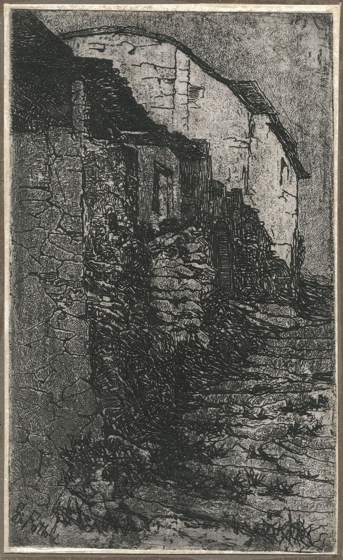 Zinc etching, Baboni-Malesci CXI. A fine impression, richly inked and with a strong plate tone, printed in black ink on white wove paper. Trimmed just outside the platemark, pasted on cardboard; to the platemark 226 x 136 mm.