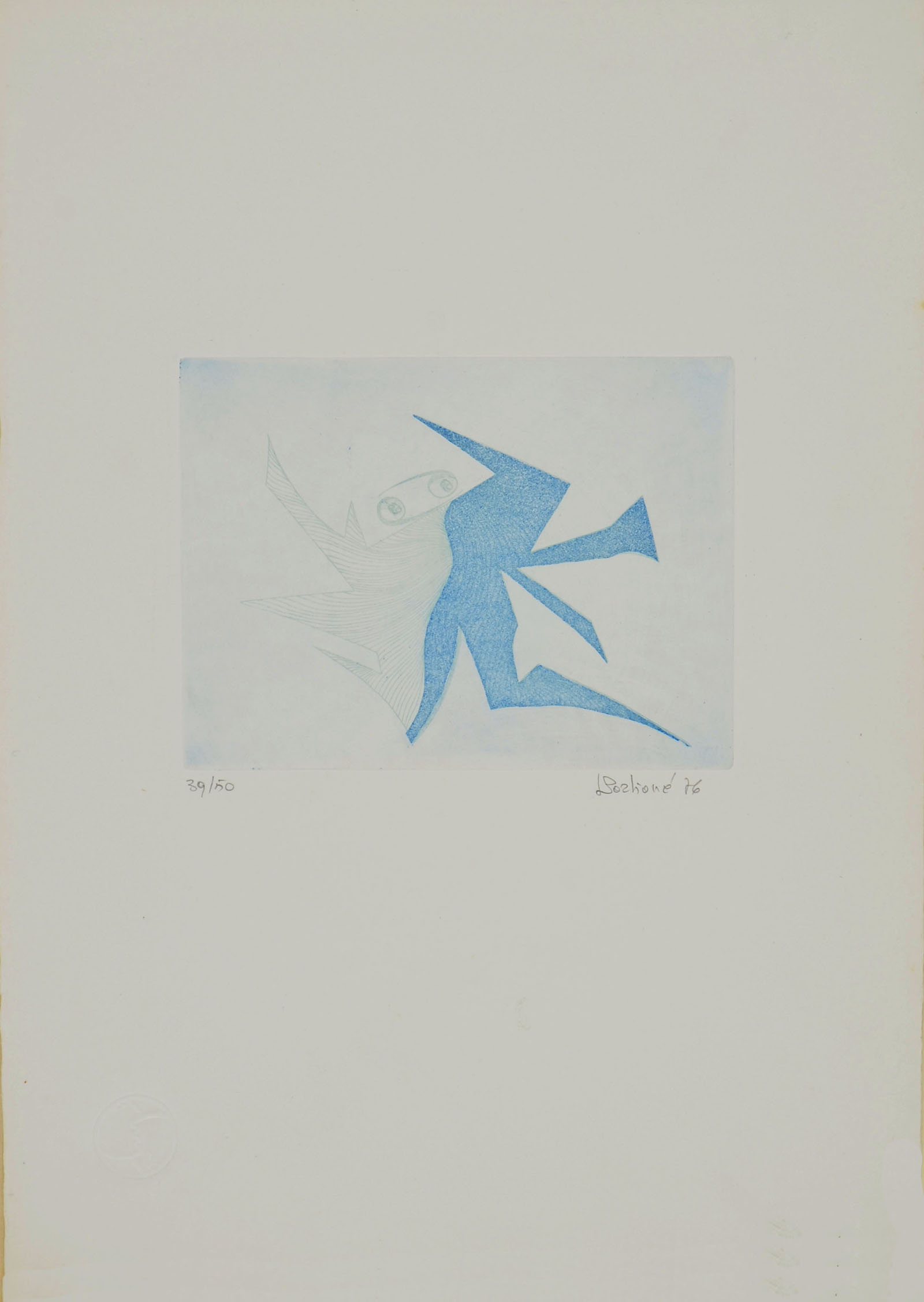 Etching and aquatint, printed in colour. From the series Storie di Stelle, Dodici Acqueforti di Laura Portione', printed in Venice at Centro Internazionale per la Grafica in 1976. The edition consisted of 50 impressions numbered in Arabic and 10 numbered in Roman. Our impression numbered, signed and dated in pencil bottom margin 39/50 LPortione' 76. To the platemark 110 x 147 mm, the full sheet 348 x 250.
