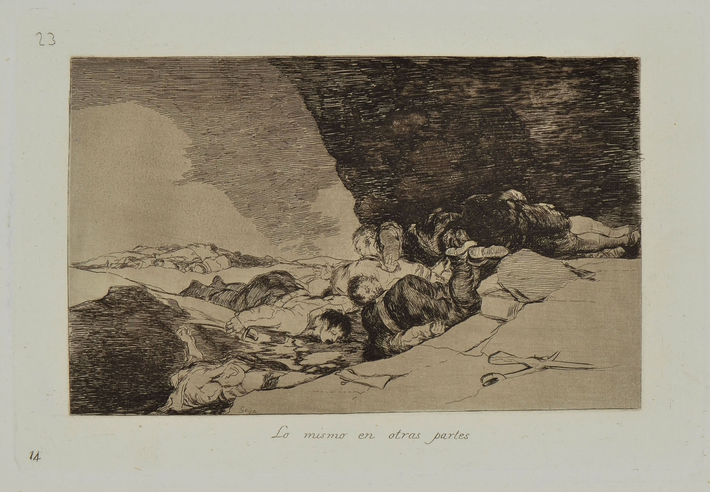 Etching, lavis, drypoint and burin, plate 23 from Los Desastres de la Guerra (c.1810-1820); Harris 143, III, 1b. An impression from the first edition (1863), limited to 500 copies, printed in sepia ink on heavy, absorbent wove paper with partial watermark J.G.O. and palmette. With margins, generally in very good condition. To the platemark 160 x 240 mm, the entire sheet measuring 236 x 318 mm.