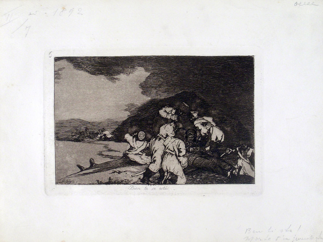 Etching, lavis and burin, plate 6 from Los Desastres de la Guerra (c.1810-1820); Harris 126, III, 2. An impression from the second edition (1892), limited to 100 copies, printed in black ink on laid paper. With margins, generally in very good condition. To the platemark 140 x 207 mm, the entire sheet measuring 235 x 320 mm.