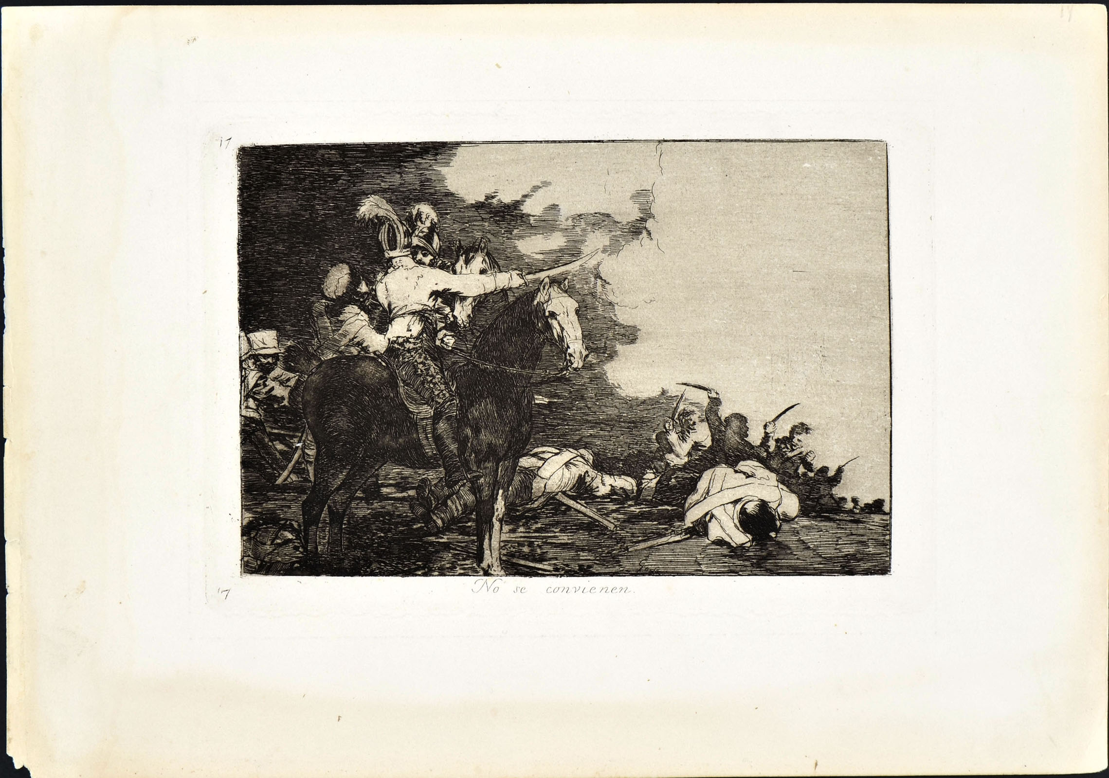 Etching, lavis, drypoint, burin and burnisher, plate 17 from Los Desastres de la Guerra (c.1810-1820); Harris 137, III, 1b. An impression from the first edition (1863), limited to 500 copies, printed in sepia ink on heavy, absorbent wove paper. With full margins, traces of moisture on the lower margin, otherwise in very good condition. To the platemark 147 x 218 mm, the entire sheet measuring 230 x 329 mm.