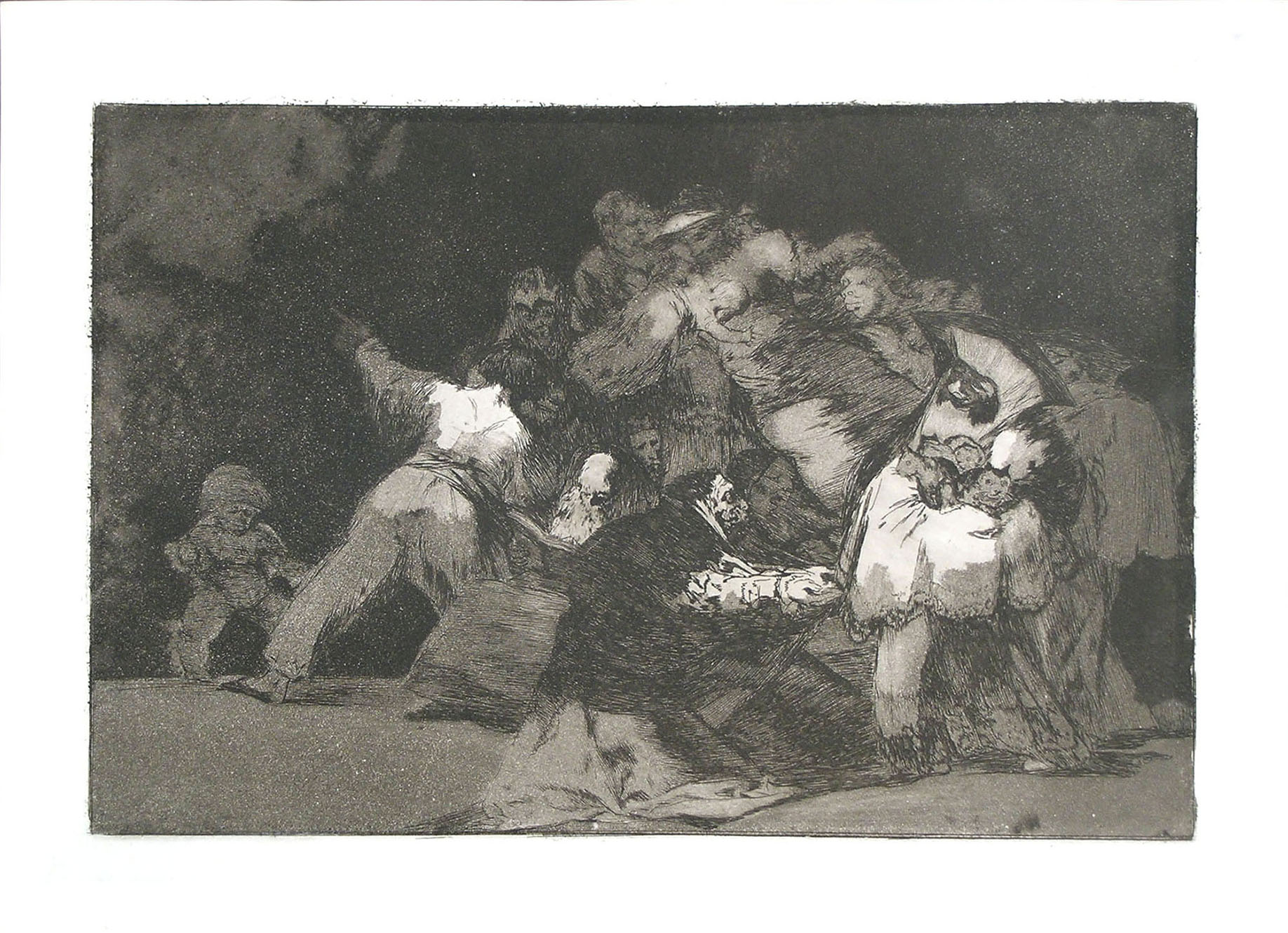 Etching and burnished aquatint, plate 9 from Los Proverbios (c.1816-1824); Harris 256, III, 1. A fine impression from the first edition (1864), limited to 300 copies, printed in black ink on heavy wove paper. With margins, some minor defects at top corners, verso, from previous mounting; otherwise in very good condition. To the platemark 245 x 350 mm, the entire sheet measuring 276 x 380 mm.