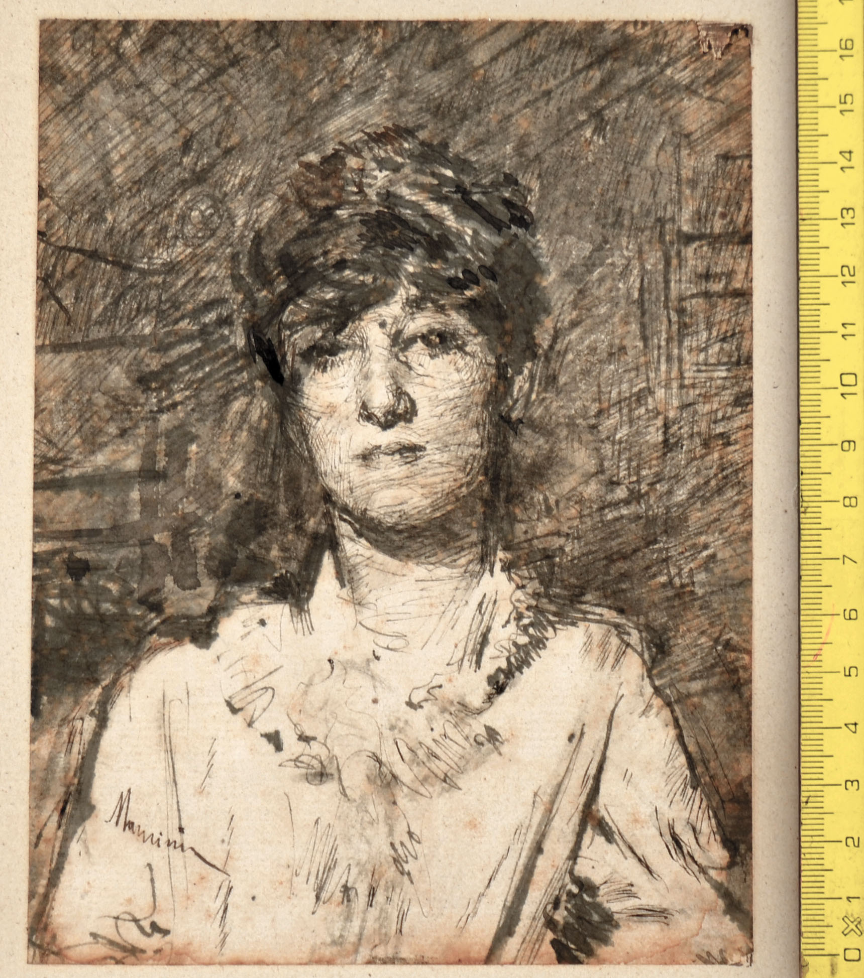 Pen and brush with black and gray ink; signed Mancini. 167 x 127 mm.
