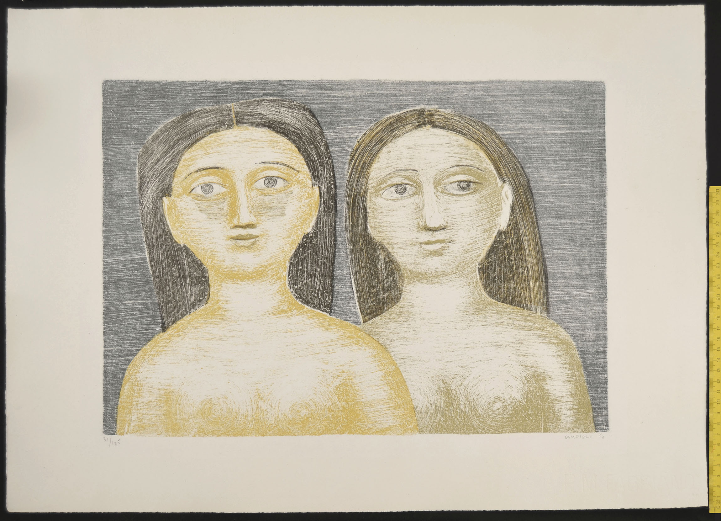 After military service during World War I, Campigli moved to Paris in 1919. In Paris he worked for nine years as a journalist for Il Corriere della Sera, during which time he began to paint. Self-taught as a painter, he was initially drawn to Purism, Léger, the neoclassicizing works of Picasso and Metaphysical painting. Campigli also admired the preclassical works in the Louvre, but it was only in 1928, when he saw the Etruscan collection at the Villa Giulia in Rome, that he was profoundly affected by ancient art. His love of archaism and of hieratic and abstract form led him to find sources in Cretan, Pompeian and Coptic as well as Etruscan art. Campigli very rapidly won acclaim, and had exhibitions in Rome, New-York, Venice and Paris. He settled in Saint Tropez in 1949; the Palazzo Reale in Milan held a big retrospective show of his work in 1967. Campigli always showed interest in prints, mainly lithography.