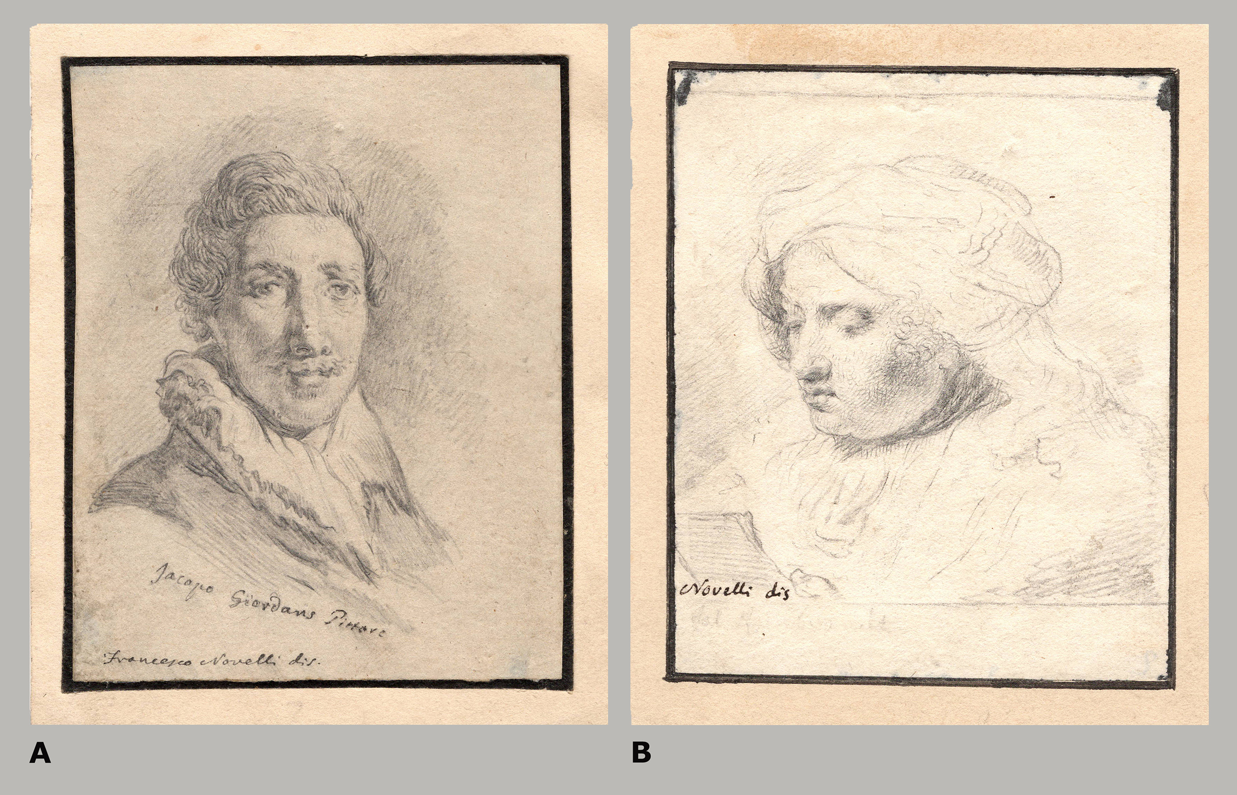 A) Portrait of a gentleman, after Jacob Jordaens, inscribed and signed in pen Jacopo Giordans Pittore / Francesco Novelli dis. 88 x 71 mm