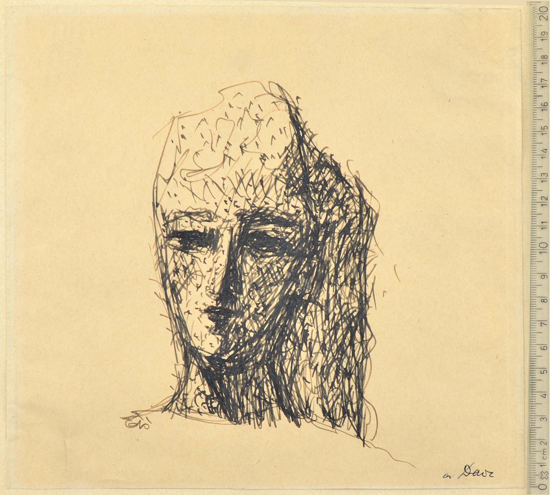 Pen with ink, signed bottom left Giò, dedicated a Daria bottom right (Daria Guarnati). 205 x 219 mm.