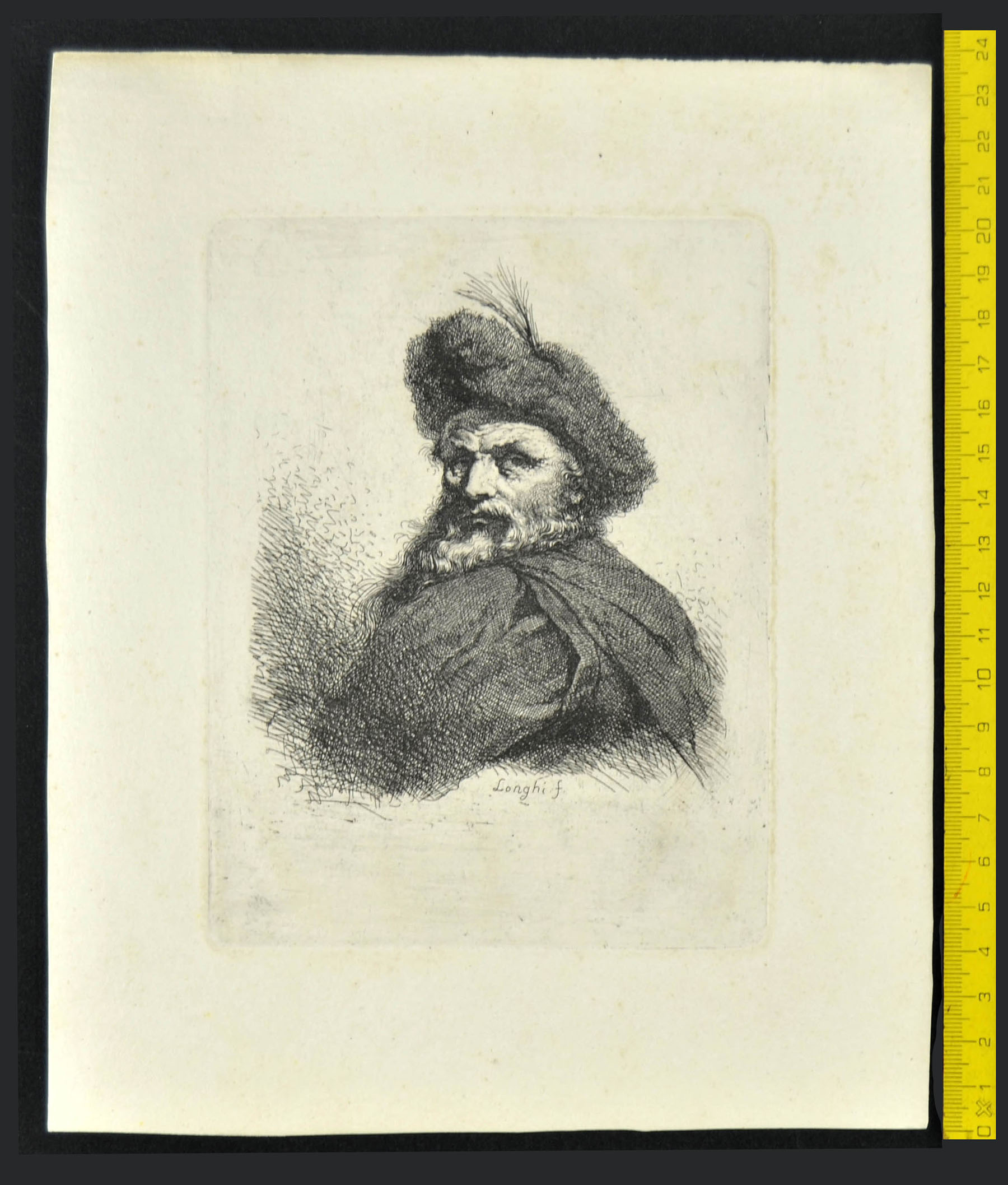 Longhi's invention follows the tradition of the etched heads by Castiglione, Rembrandt and the Tiepolos.