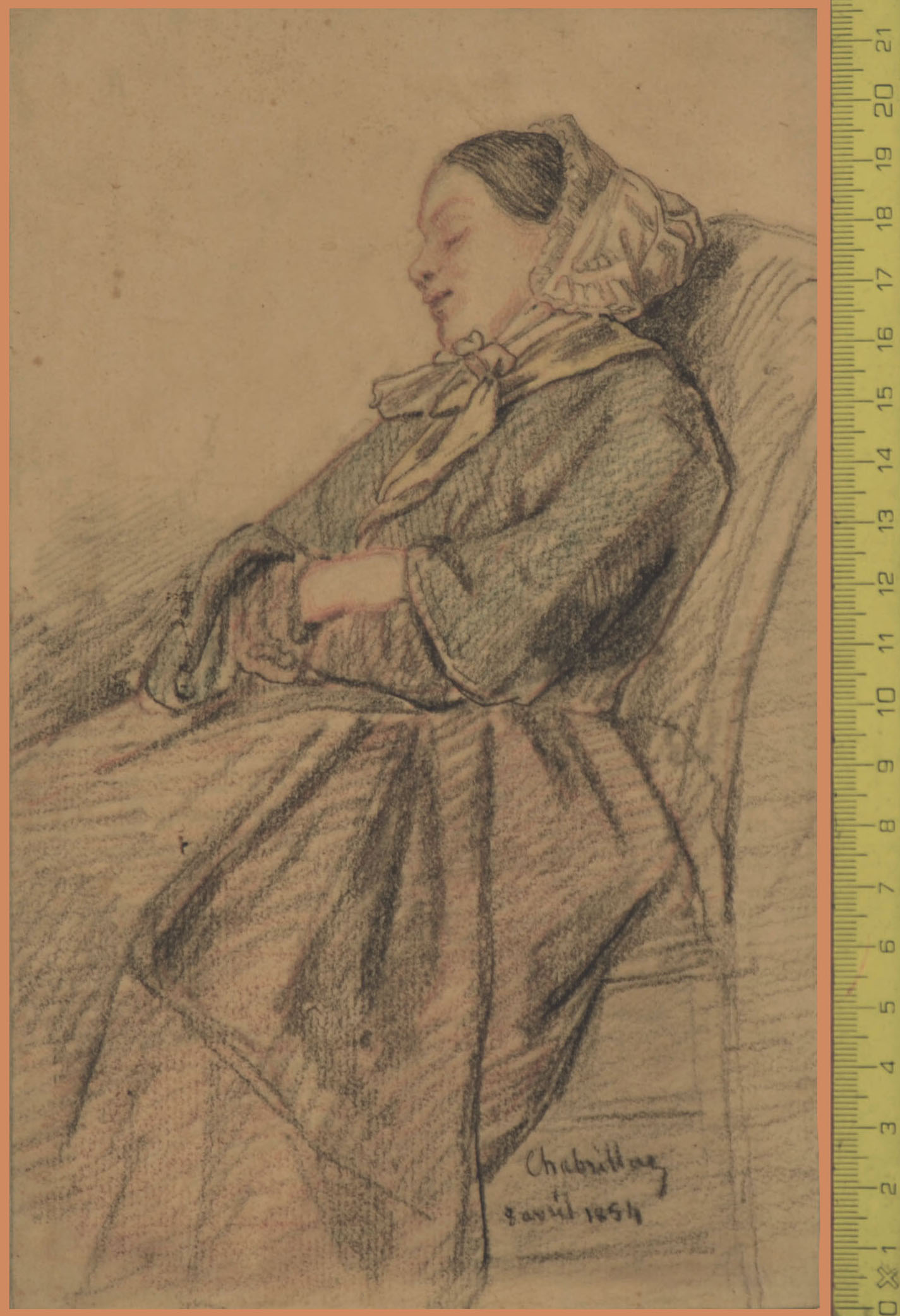 Red and black chalk, 216 x 135. Signed and dated at bottom right Chabrillac / 8 Avril 1854.