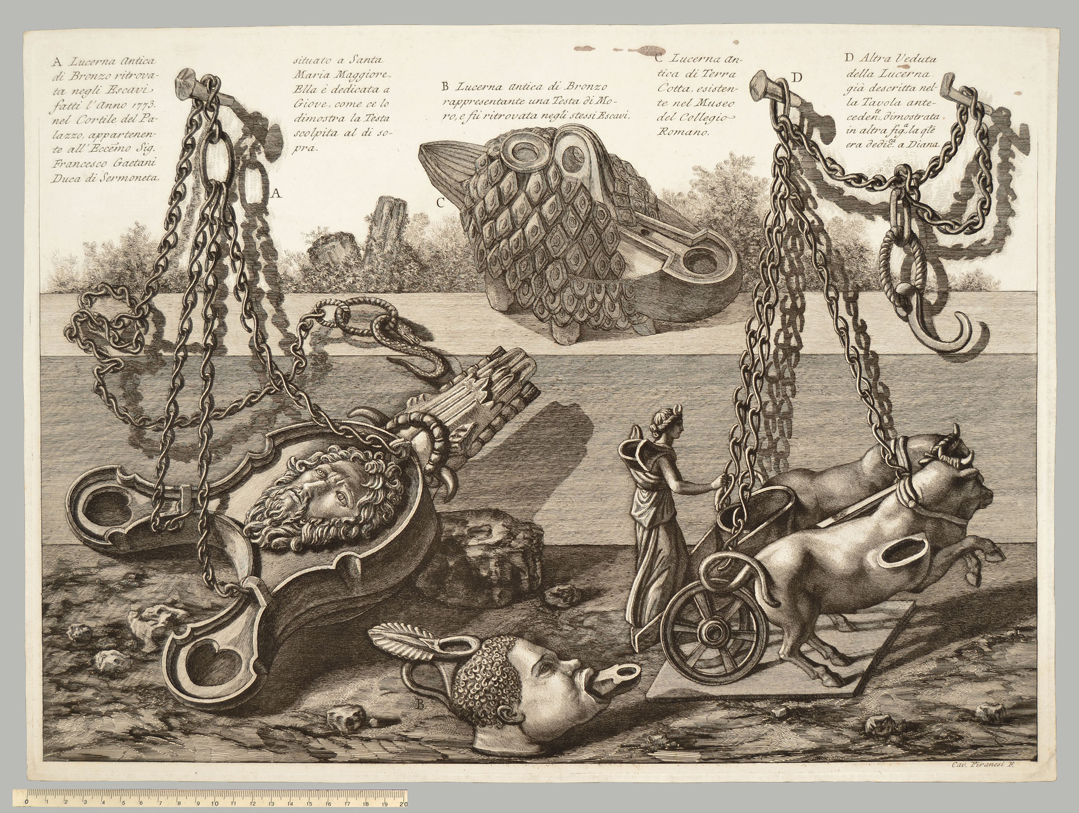 Etching, signed in the plate lower right Cav. Piranesi F., from Vasi Candelabri Cippi Sarcofagi Tripodi Lucerne Ed Ornamenti Antichi Disegn Ed Inc Dal Cav Gio Batta Piranesi Pubblicati l'anno MDCCLXXIIX. A very good impression, printed on paper with watermark Fleur-de-lys in a double circle. Small, even margins. Minor stains at the top, in very good condition. To the platemark 385 x 534 mm.