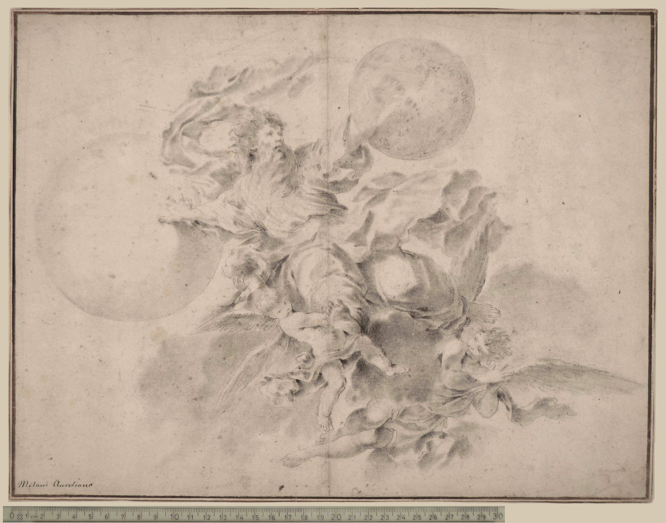 Another drawing with the same subject is at Windsor Castle. See Andrea Czére, Five New Chalk Drawings by Aureliano Milani, in Master Drawings Volume 26, number 2, 1988; fig. 2. pag. 135.