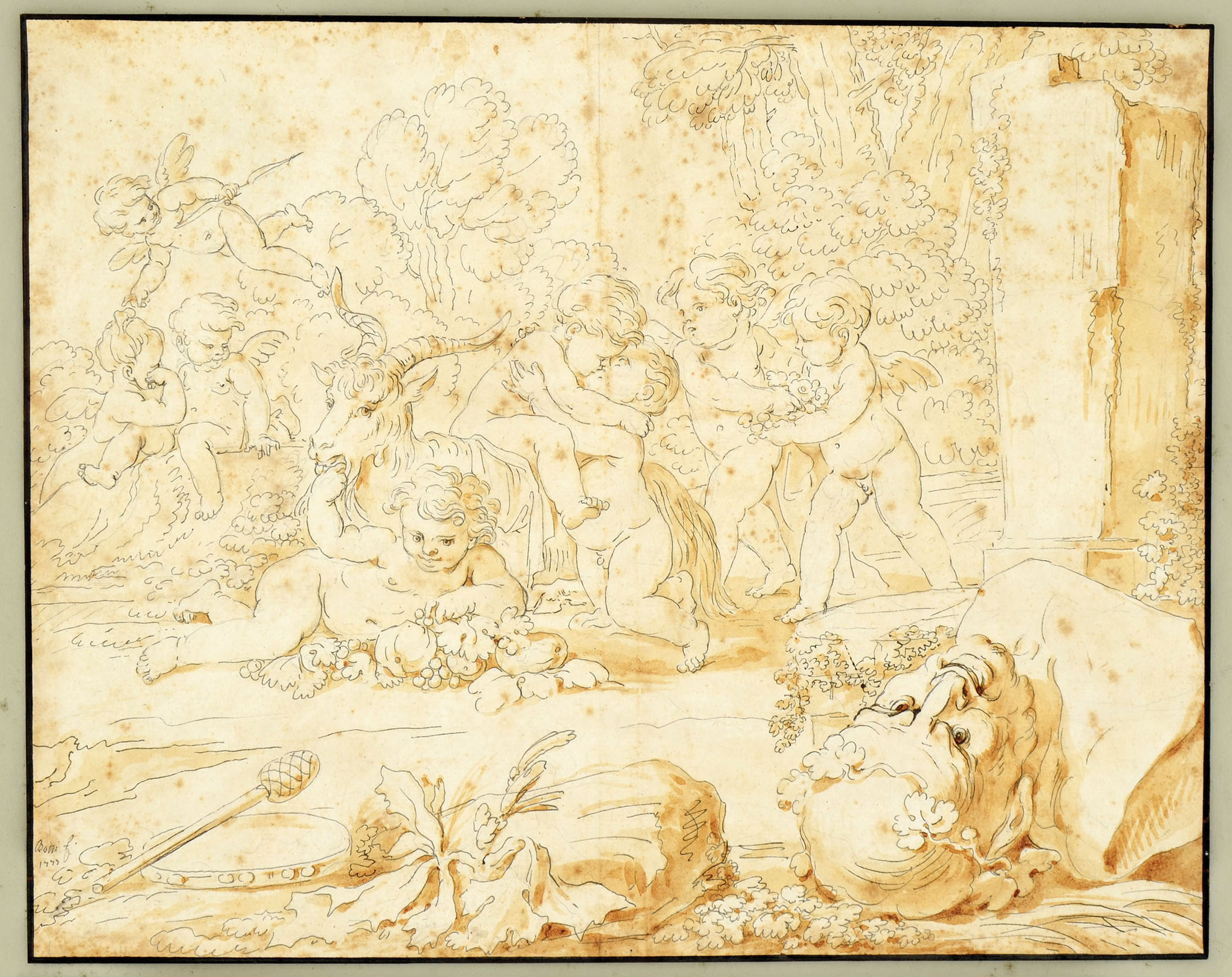 Pen with black ink, washed in brown. Signed and dated bottom left Bossi f. / 1777