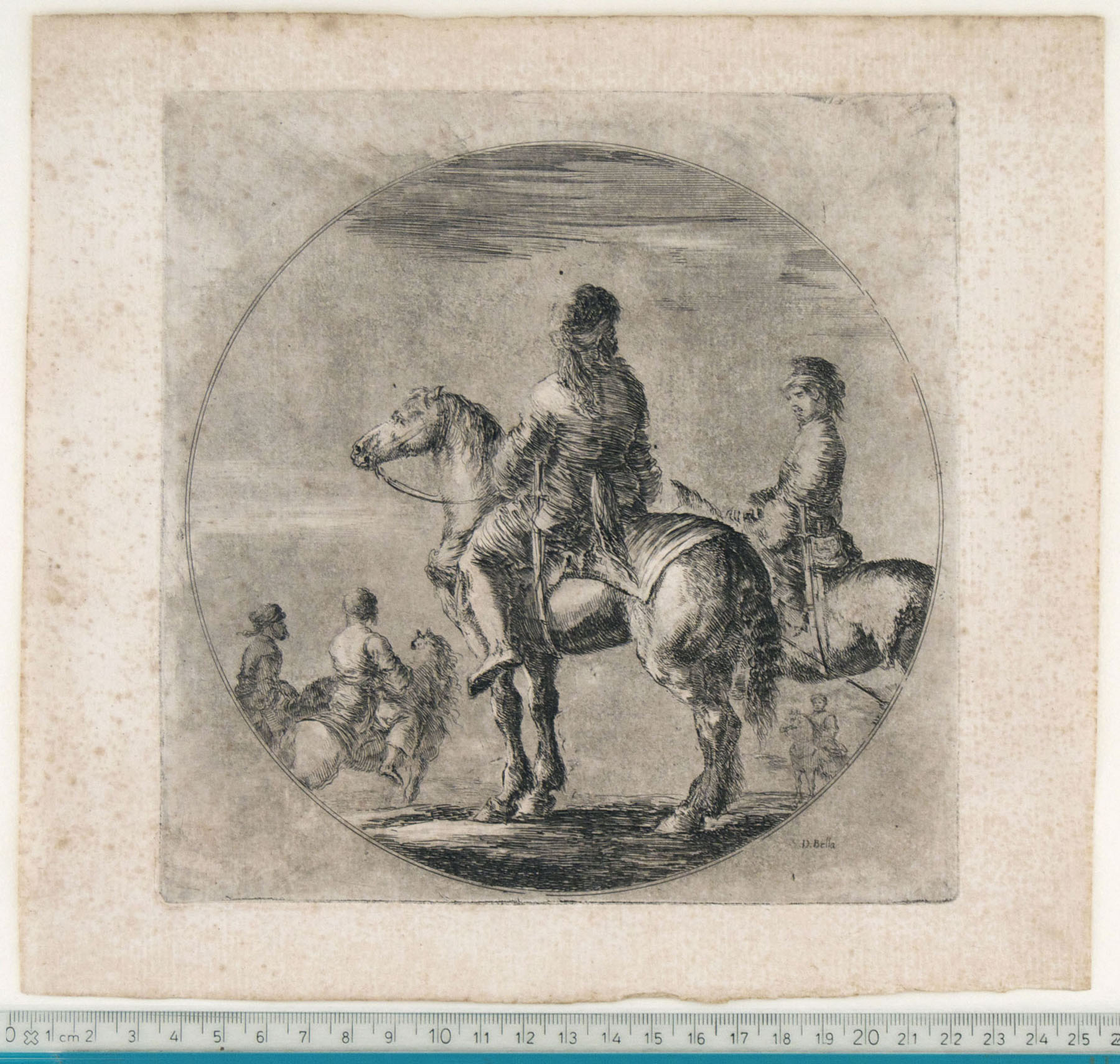 Florentine-born Stefano della Bella was a prolific draftsman and etcher who succeeded Jacques Callot at the Medici grand-ducal court as a professional designer-printmaker. The roots of his graphic style lie in the calligraphic Mannerism of Callot, but during the course of his career Della Bella developed into an exuberant Baroque artist. His work remained influential for many decades and has been actively collected up to the present day. Della Bella was born into an artistic family; his father was a sculptor, and his three brothers all became artists. Della Bella himself was apprenticed to a goldsmith but also studied drawing, painting, and etching. He became a protégé of the powerful Medici family and in 1633 was sent to Rome, where he lived in the Medici palace. There he developed his skills, making original drawings of public festivities, architecture, landscapes, and antique sculpture. In 1639 Della Bella was sent to Paris in the retinue of the Medici ambassador to the court of Louis XIII. There he remained until 1650, executing print commissions for Parisian publishers and for prominent patrons such as the Cardinals Richelieu and Mazarin. In 1650 Della Bella returned to Florence.