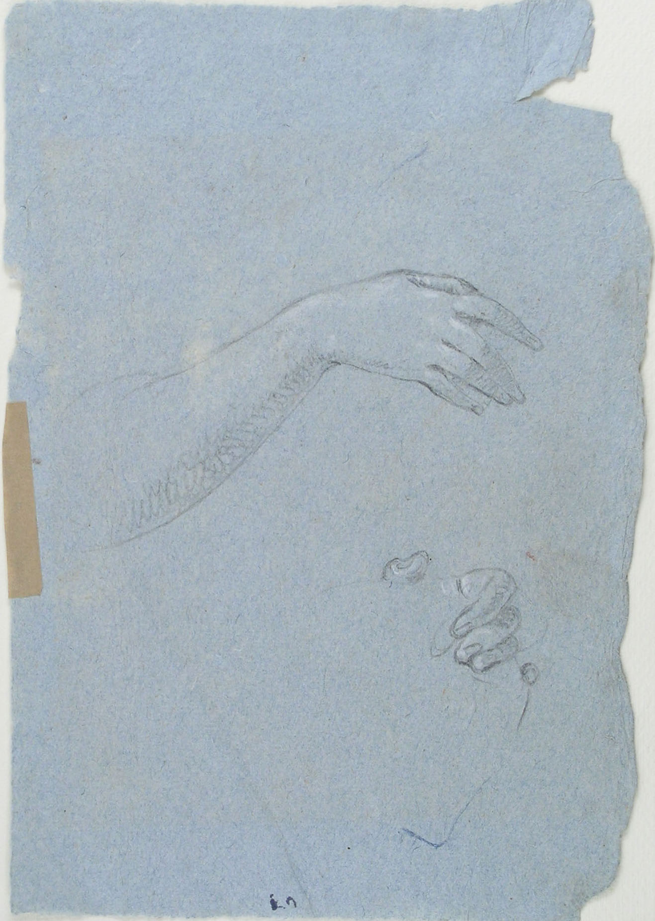 Black chalk, traces of heightening with white, on blue paper; 274 x 190 mm.