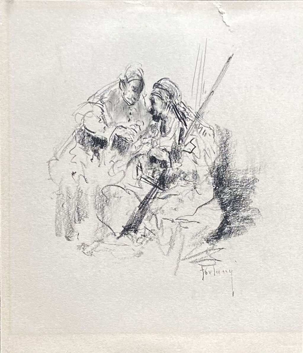 Black chalk, signed Fortuny bottom right; 114 x 99 mm.
