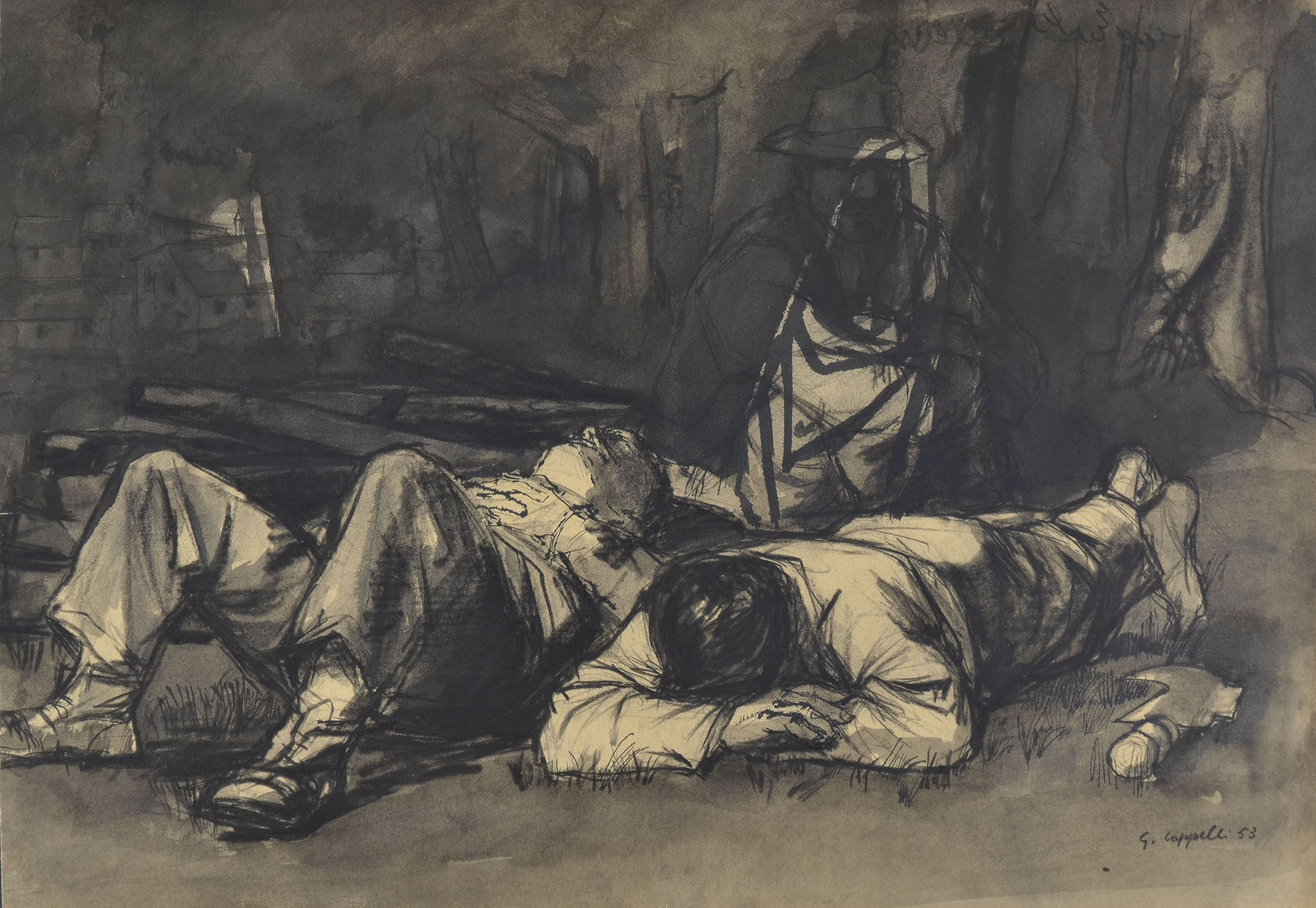 Pen, black ink, washed in gray, over traces in black chalk. Signed and dated in pen bottom right G. Cappelli 53. On paper pasted on cardboard, which bears the title, much probably by the artist's hand.