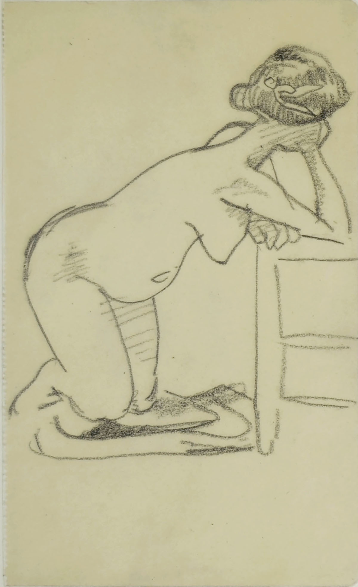 NUDE WOMAN KNEELING, ONE ELBOW ON A CHAIR