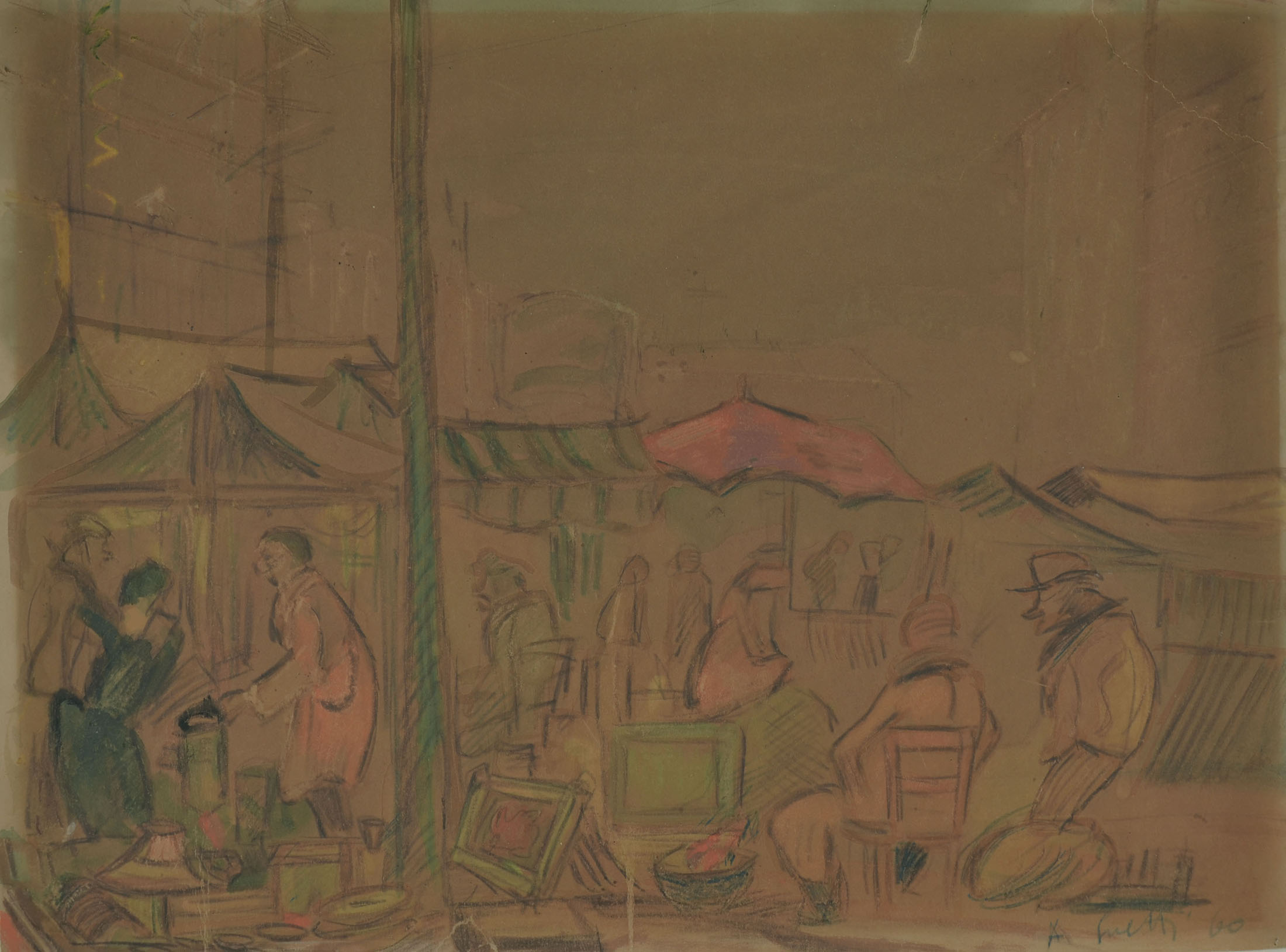 Black chalk and pastels on cardboard. Signed and dated bottom right corner, with green pastel, A. Salietti 60.