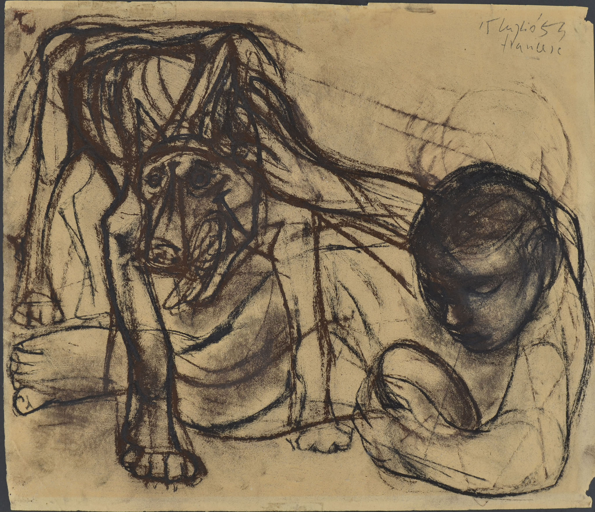 Black chalk. Dated and signed top right 15 luglio ’53 / francese. 450 x 524 mm.
