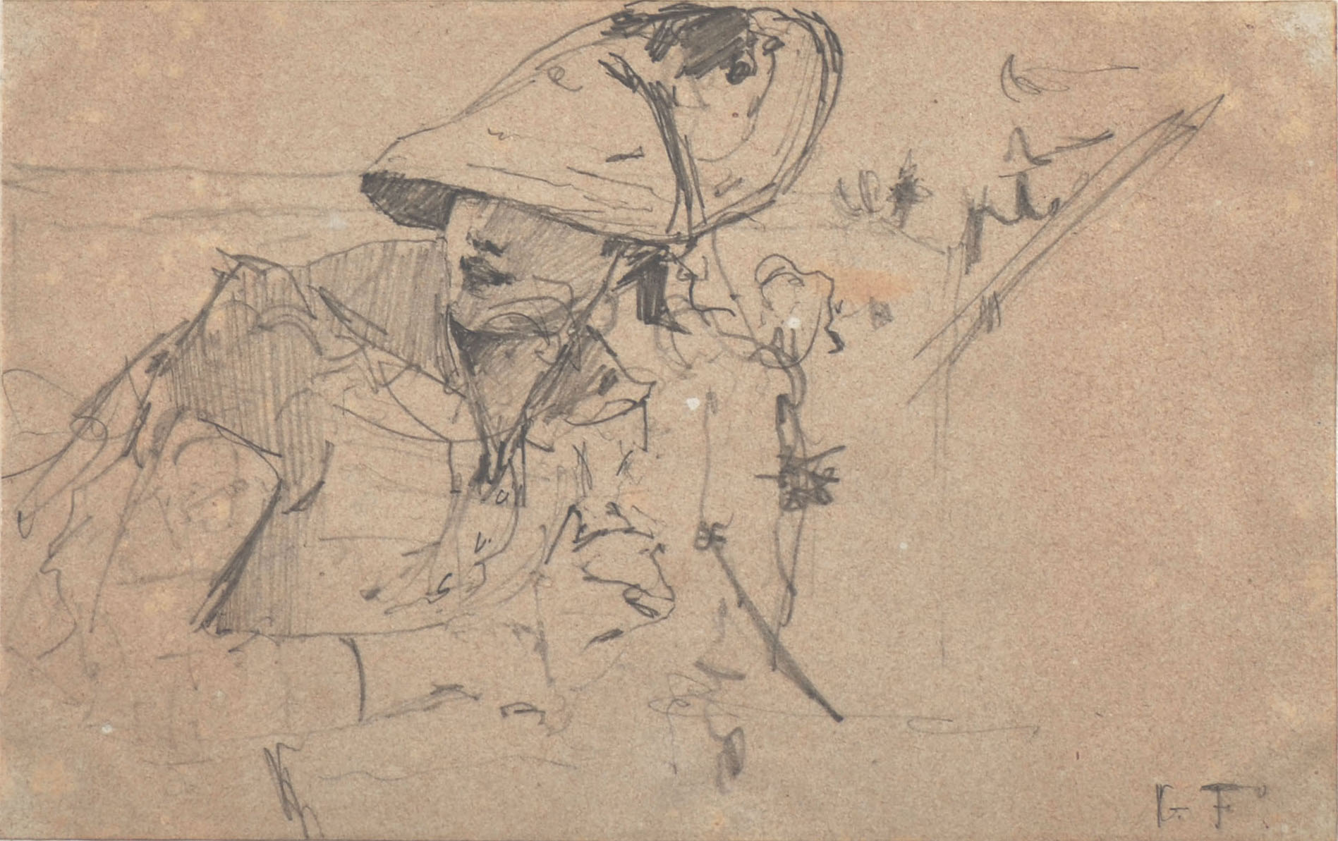 Black chalk on hazelnut coloured paper. Signed with the monogram G F°. 103 x 164 mm.