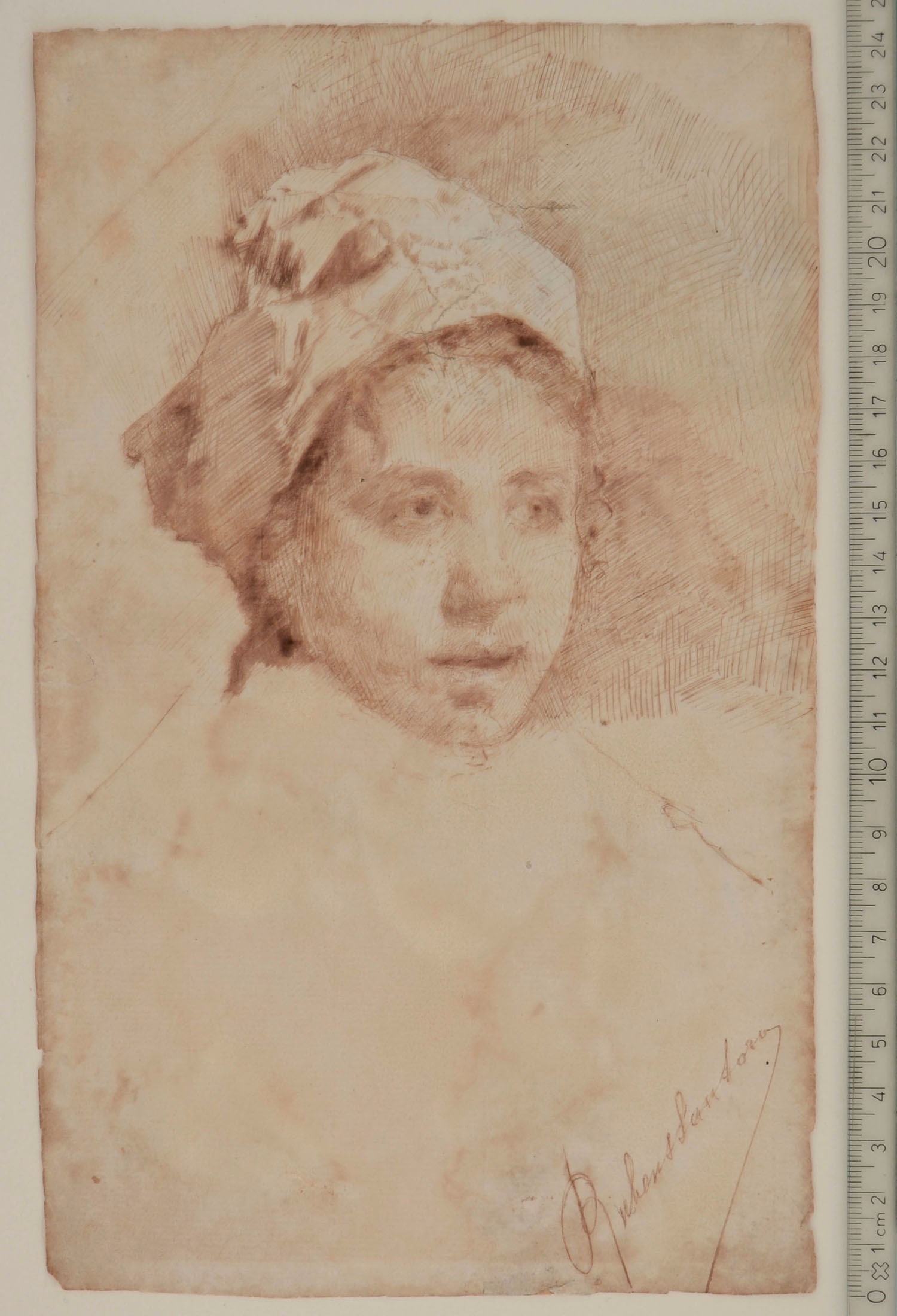 Pen and brown ink, washed, on laid paper; 244 x 150 mm. Signed in pen and brown ink Rubens Santoro.