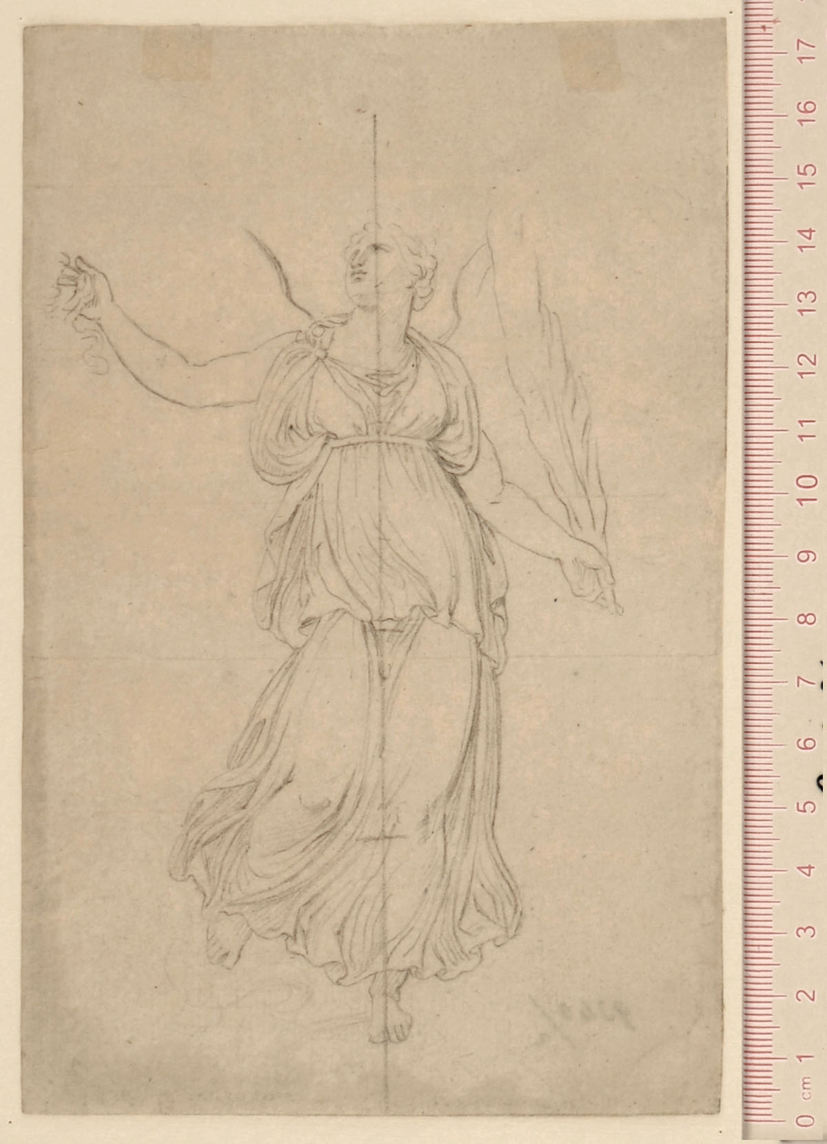 Our drawing is a study for the figure of Victory standing between the commemorative medallions for the victory of Jena and Eylau and the other one for Friedland.
