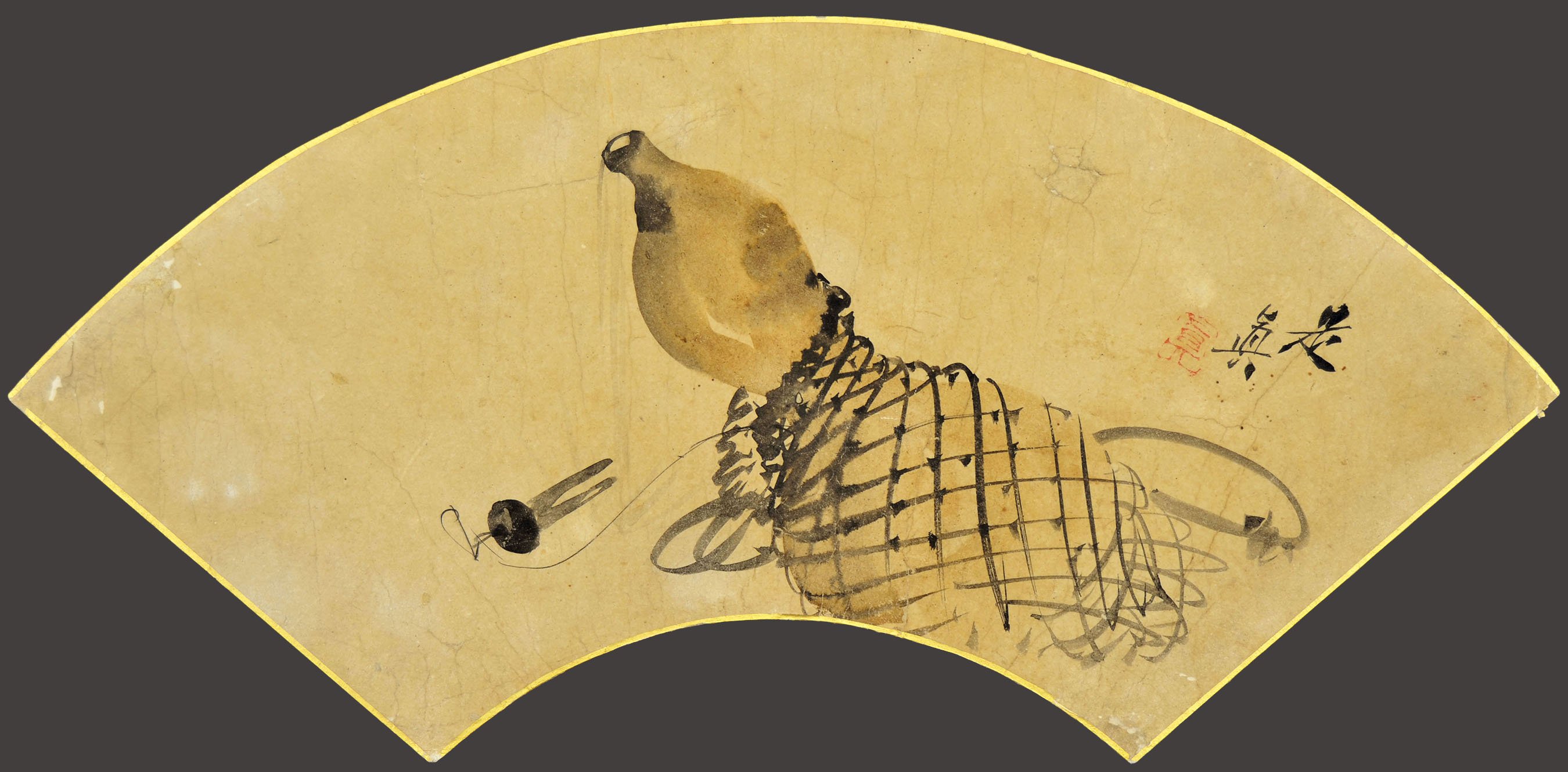 Ink and colour on paper, a fan painting. Signed Zeshin, red seal Shin. ø 472 mm.