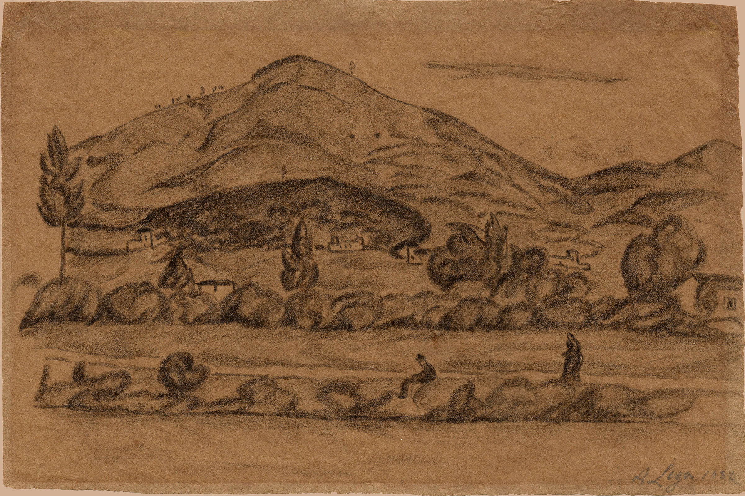 Black chalk on brownish thin wove paper. Signed and dated lower right A Lega 1932. 168 x 255 mm.