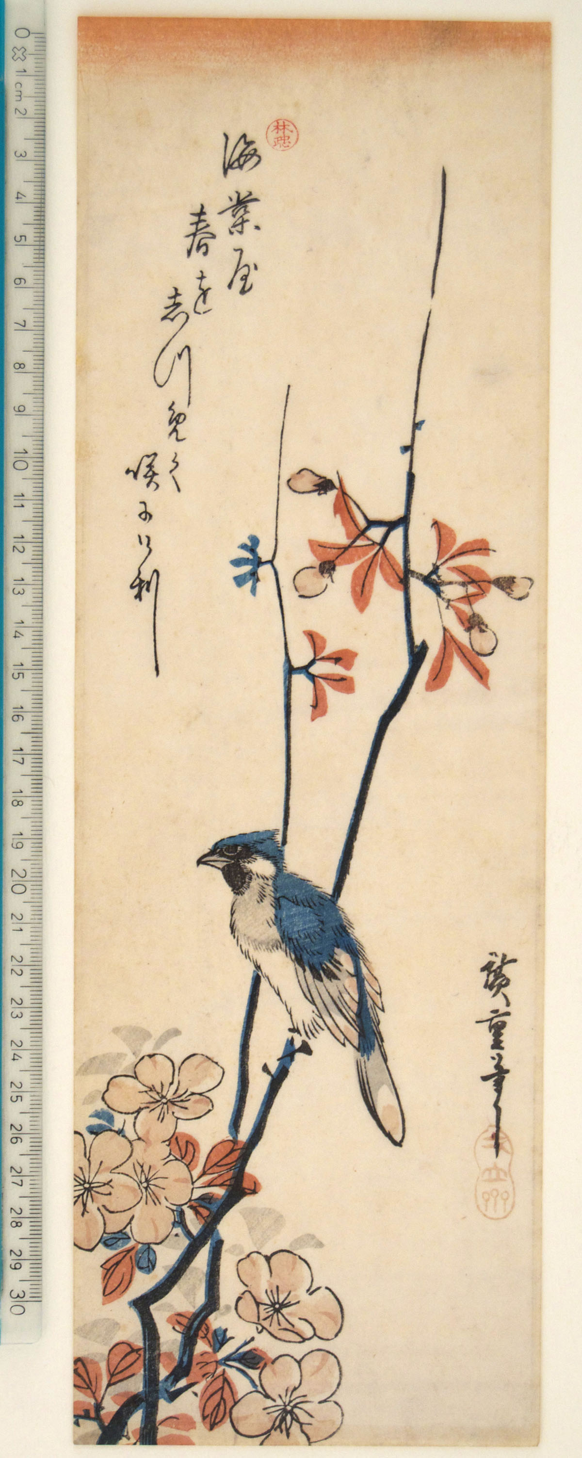 Colour woodblock print, chutanzaku. Signed Hiroshige hitsu. Red seal Ichiryûsai. Poem at top left. PROVENANCE: Hayashi (Lugt 2971)