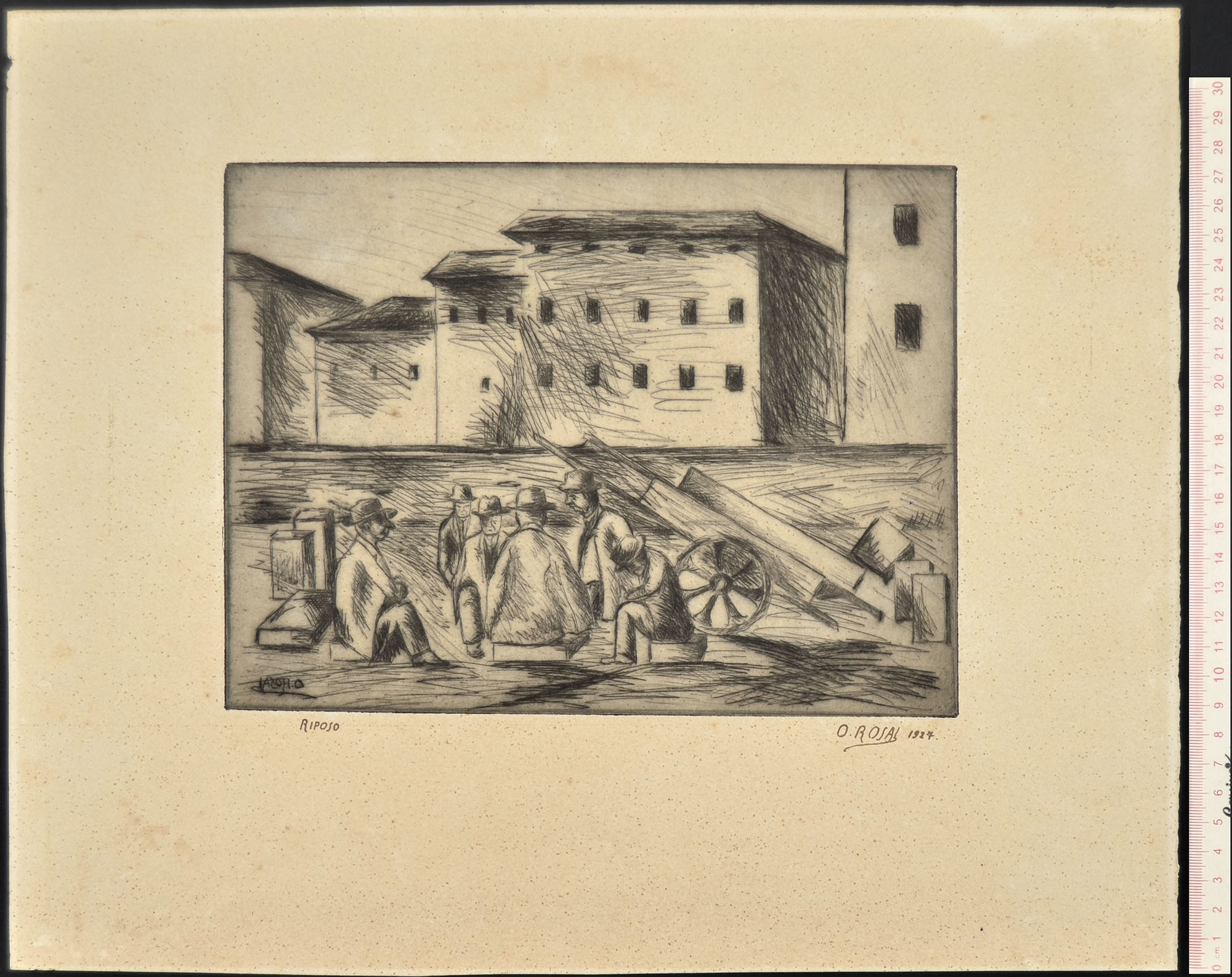 Drypoint, 1927. Titled, signed and dated in pen and brown ink by the artist on the bottom margin RIPOSO / O. ROSAI 1927. Large margins. To the platemark 187 x 248 mm, the full sheet measuring 386 x 398 mm.