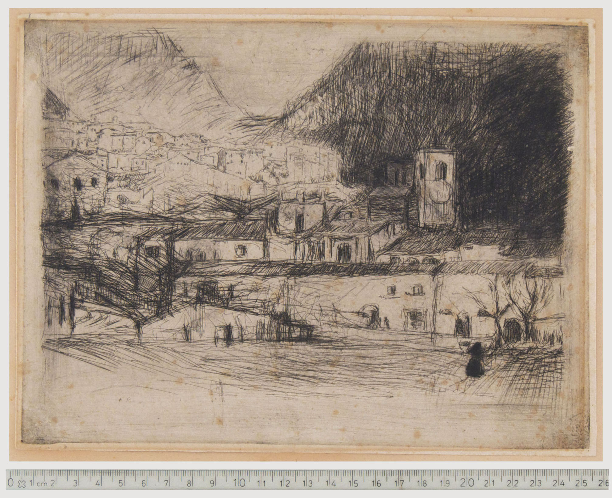 The image is visible here and shows this inscription in pen by the hand of Bartolini: n.5 Tagliacozzo (Abruzzi) / Acquaforte, diretta, dal vero / £ 35 (1924) / Luigi Bartolini.