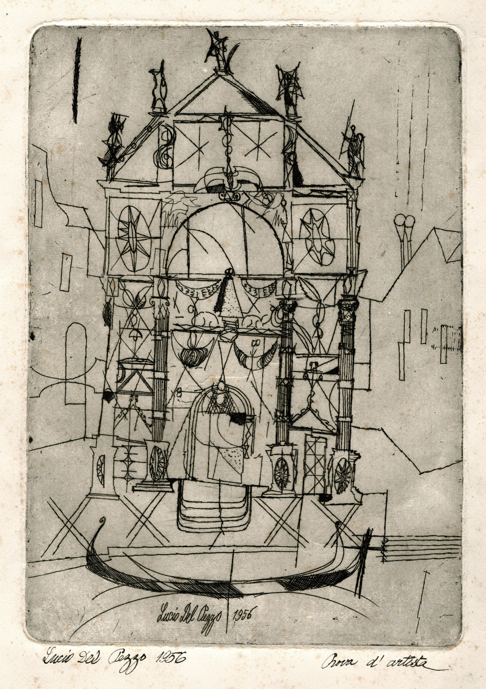 Etching, signed and dated in the plate Lucio Del Pezzo 1956, signed, dated and inscribed on bottom margin Lucio Del Pezzo 1956 / Prova d'artista.