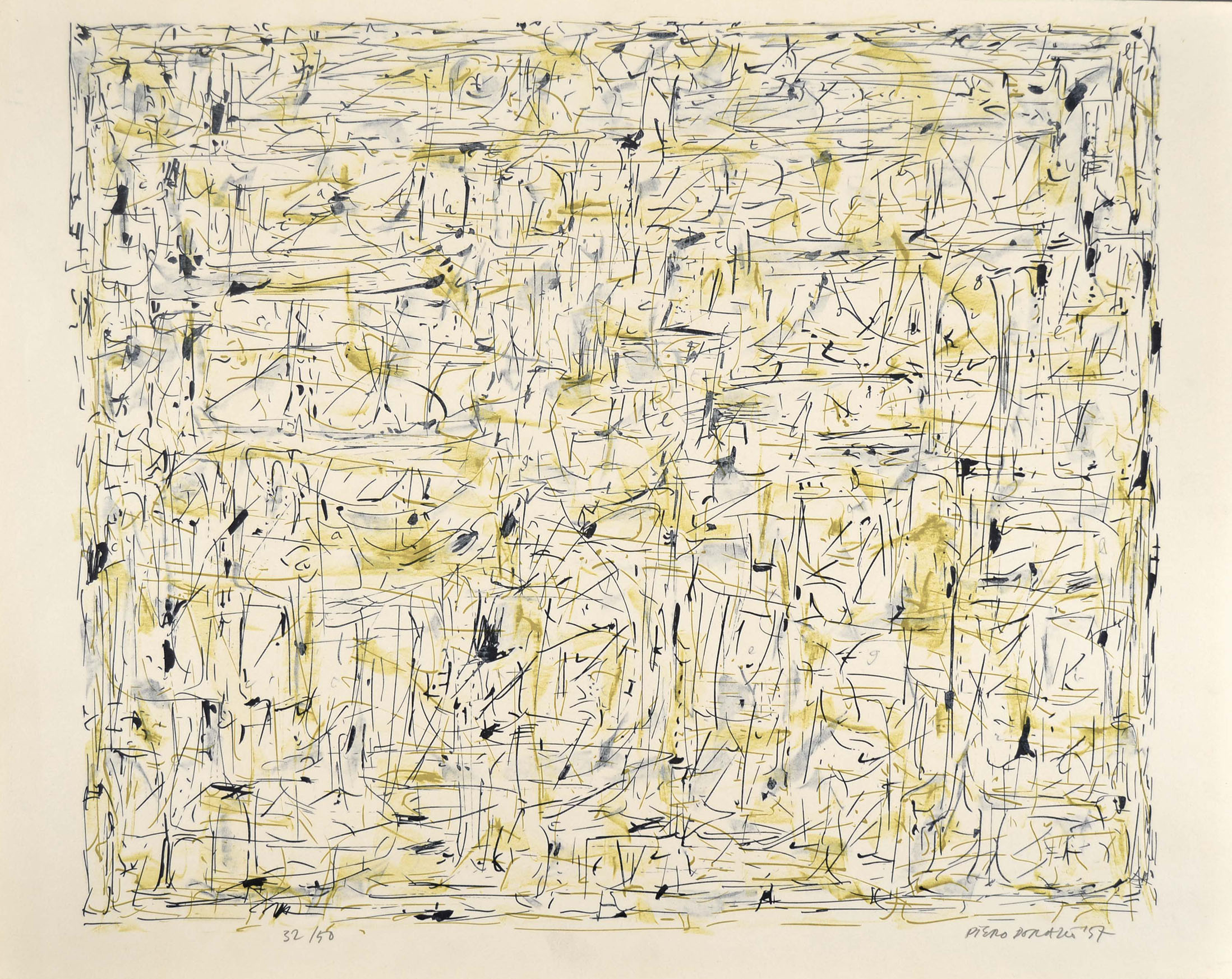 Colour lithograph, numbered, signed and dated in black chalk 32/50 PIERO DORAZIO '57.