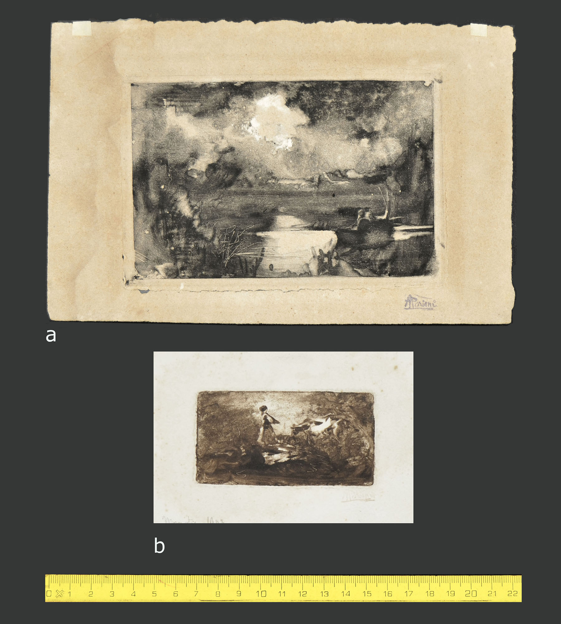 Two monotypes, sold together.