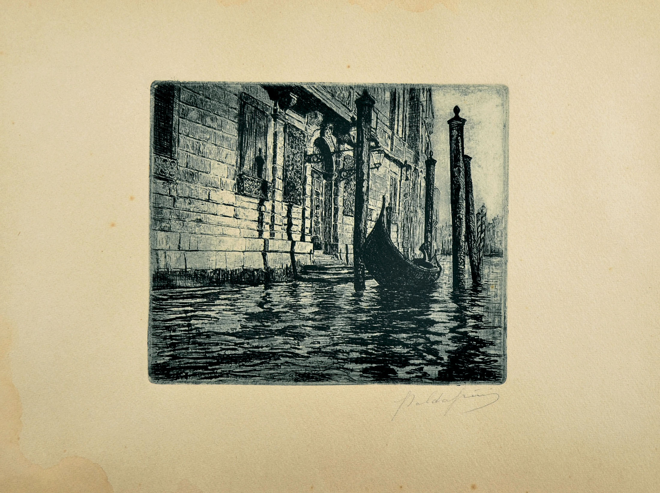 Etching, printed in bluish ink. Signed in pencil at bottom right Baldassini.